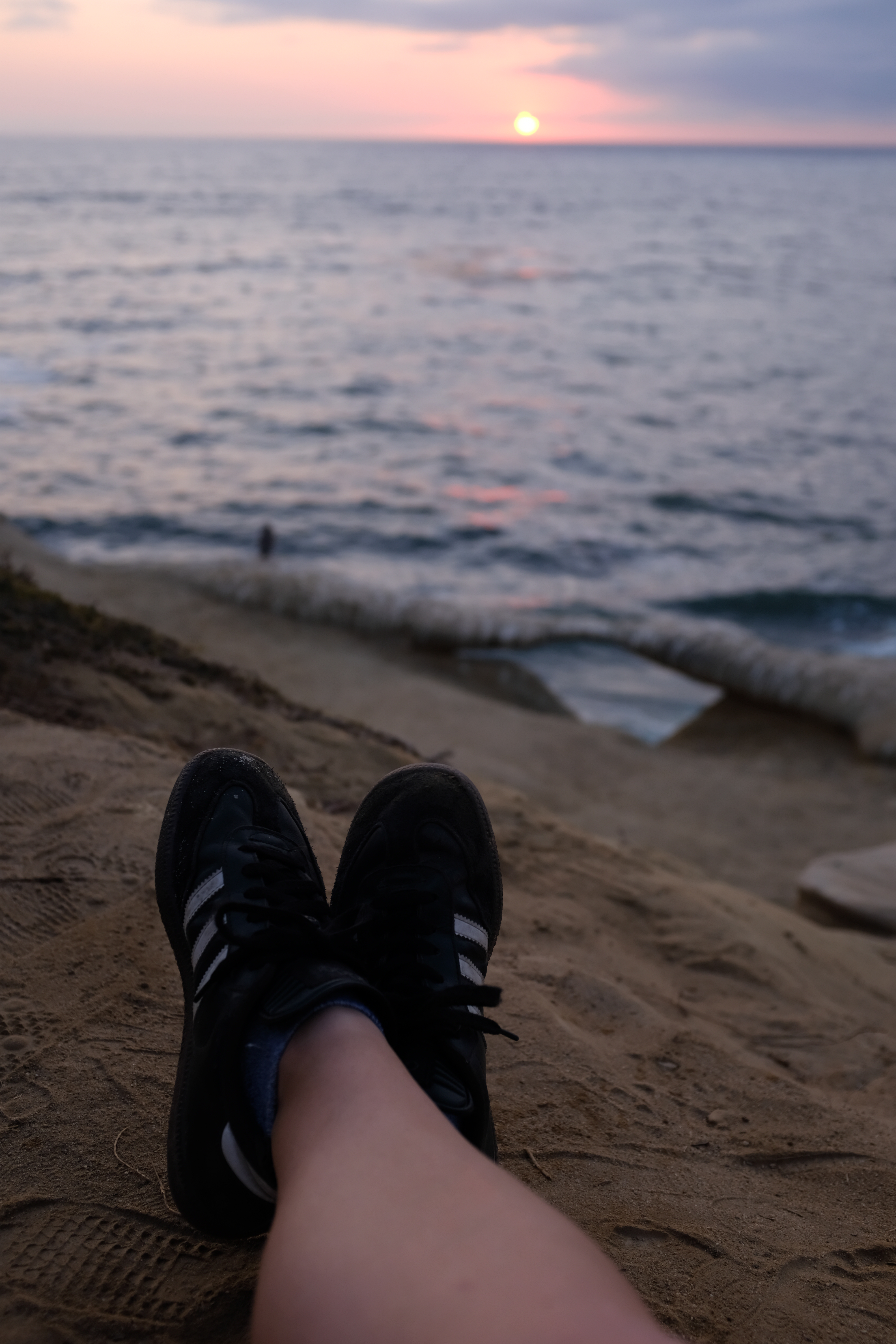 Despite growing up in Florida and spending 5-6 years on/off in California, I’ve never been a big beach person. I wear my sambas when I go. I never actually went swimming in the ocean while living in California. Instead, I would walk along the shore witnessing the sunset and the moments of other people. Sometimes I’d bring a book and curl up into a rock formation as I awaited the days’ final show. In any case, I found myself missing that routine and the reward that came with it. I felt invisible and at home all at once in this collective ritual. I particularly loved whenever I could catch another individual person honoring the moment. “Ahh, they get it”.