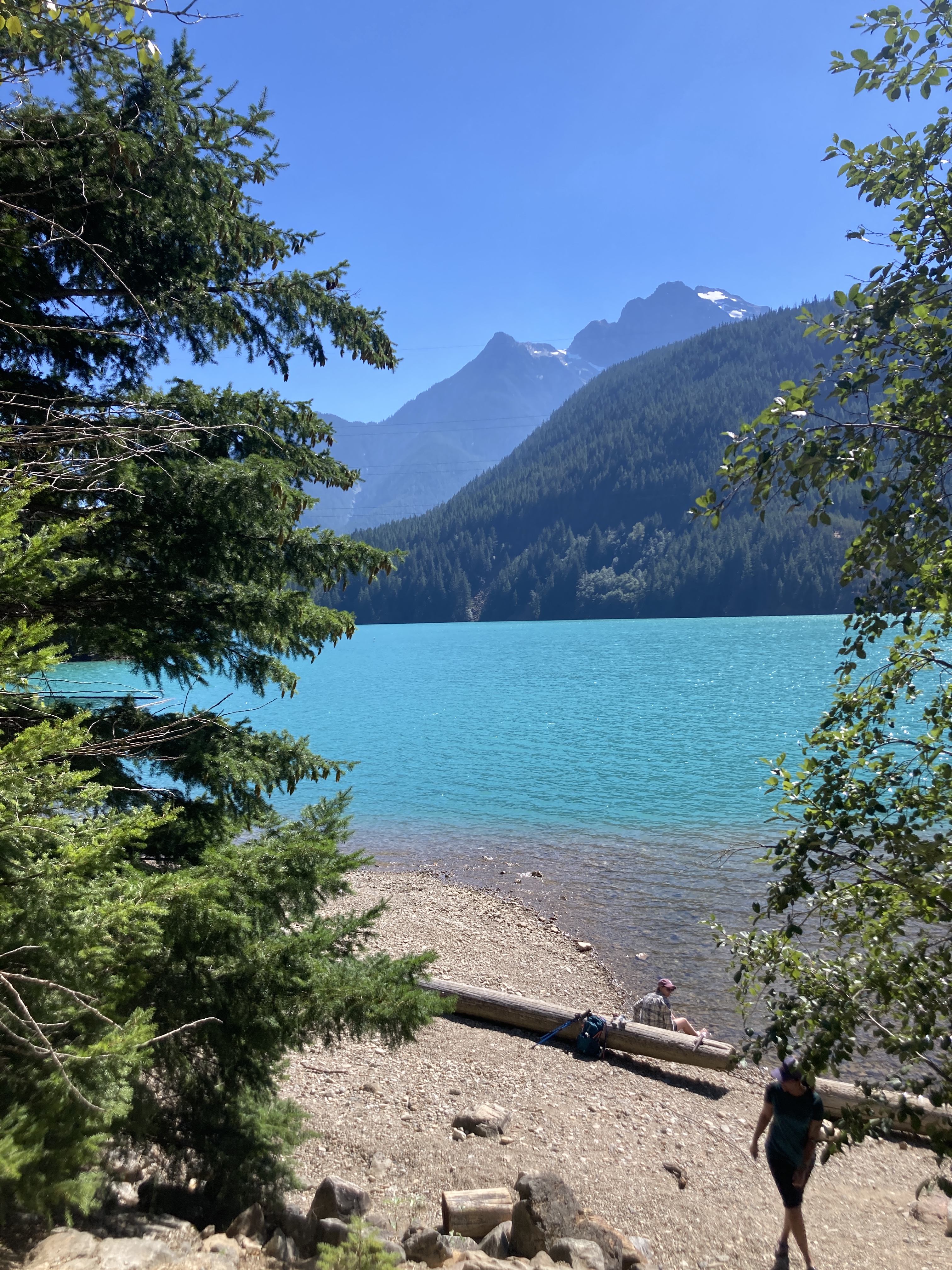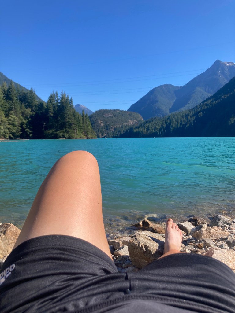 I curled up by Diablo lake when I returned after first dipping my toes in the water. I don’t normally do that. It feels impractical but I had the time since my hike was cut short and the water was SO blue. I had a glorious nap on the rocks with the hot sun beating down and the water lapping next to me. I opened my eyes from time to time just to notice how blue the water was or to pet a few dogs roaming nearby that wanted some love.
