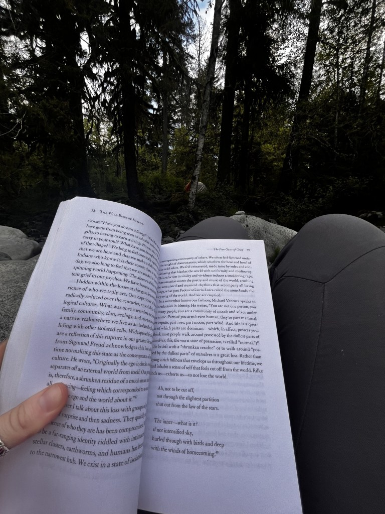 Earlier that day, I sat where they were now howling into the night to read and watch the sun slowly say goodbye. I thought about my grandma — when I see especially beautiful places I like to hold her two rings in my hands, usually snapping a photo. I spent time woodcarving too, just soaking up being back next to trees and moss again.