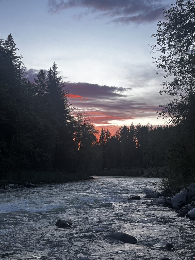 As if to give me extra motivation to actually do it, a glimpse of the northern lights was possible last night in Washington. I never saw any but the chance of it made the hours I was awake more exciting. I listened to audio messages from loved ones interspersed with podcasts at very low volume when I needed it. I put my tent up right next to the river and the sound of the water was perfect white noise minus the three early 20s who stayed up until at least 3am down by the water intermittently shouting at their dogs and each other.